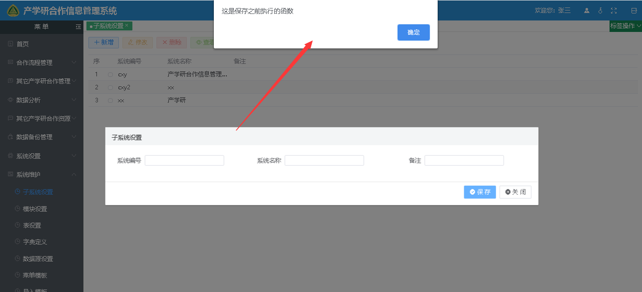 alert("这是保存之前执行的函数")