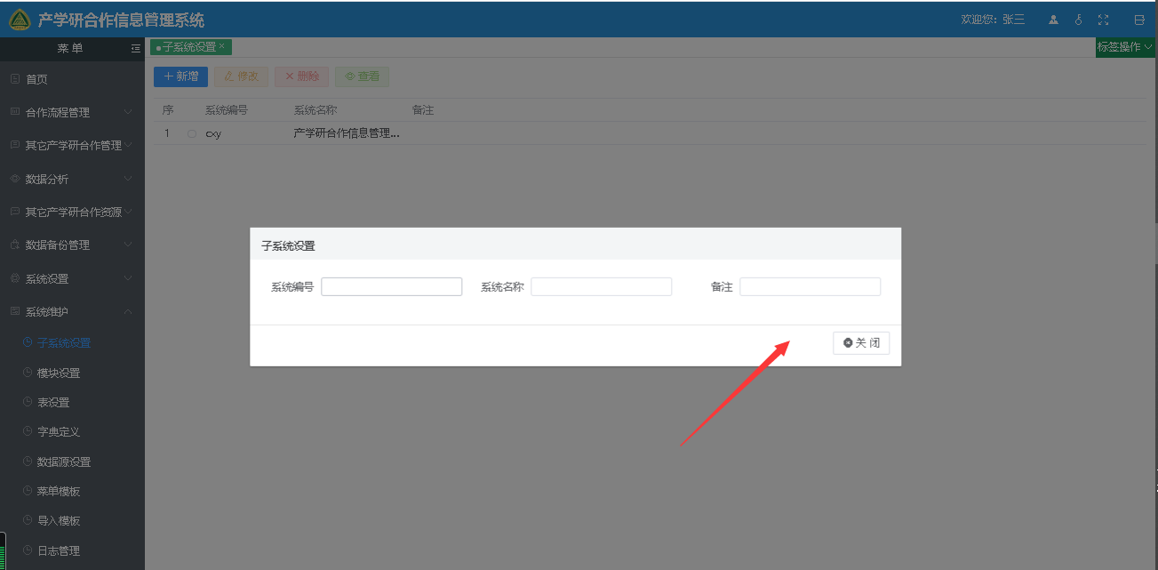 本例功能为弹出框自带数据源的操作,并且操作的数据为其它模块表中的数据,关联条件为其它模块表中的uid为当前表格选中行的sysid。