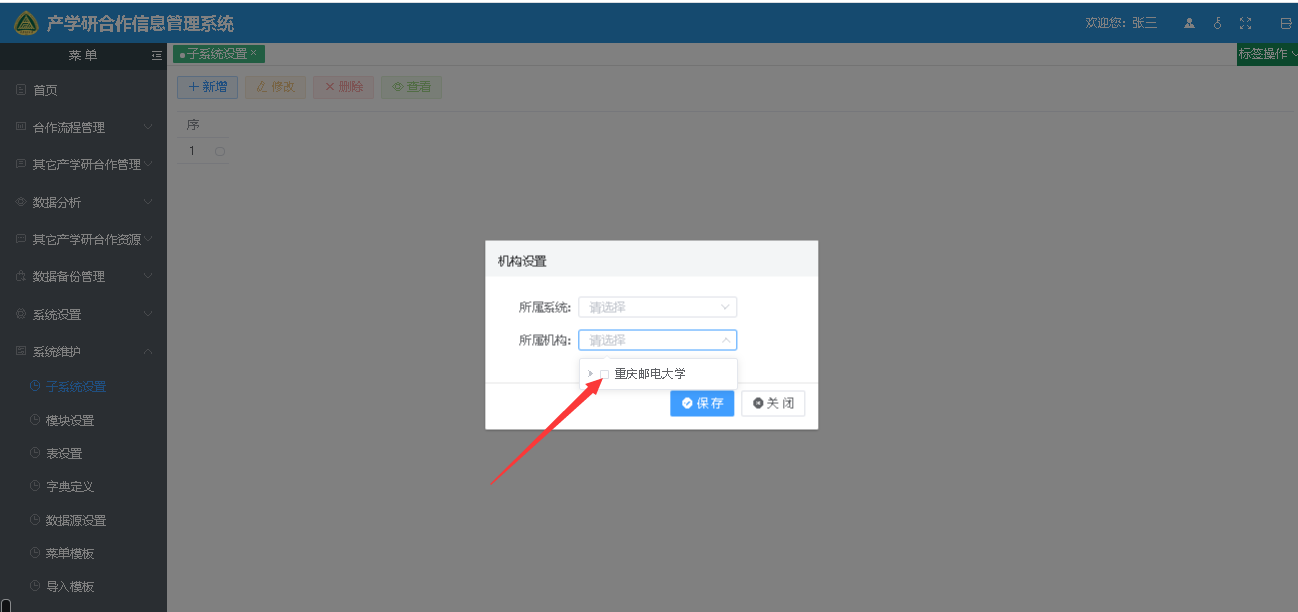 xext.sync | 否 | 用于选择扩展字段,指定选择后的值存放的变量,例如选择了用户,还要拿用户的部门编号到这个变量中,参见源码的字典设置(sys_dic)模块 | |||