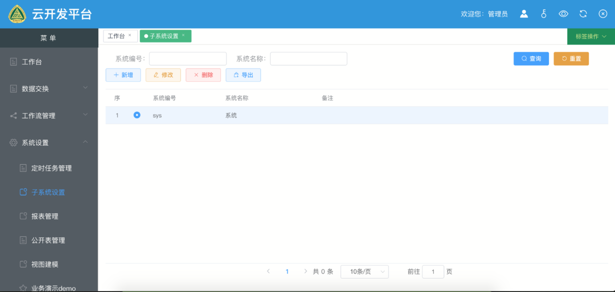 实现对子系统的增删改查。