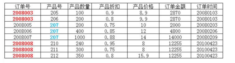 表的候选码是“订单号 + 产品号“,又”订单金额“、”订单时间“仅与订单号有关,而与产品号无关,因此并非完全依赖于候选码,不符合第二范式。