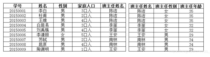 注意到在这张表中,虽然所有属性都依赖于"学号",但"班主任性别"、“班主任年龄”直接依赖于“班主任姓名”,因此不符合第三范式。