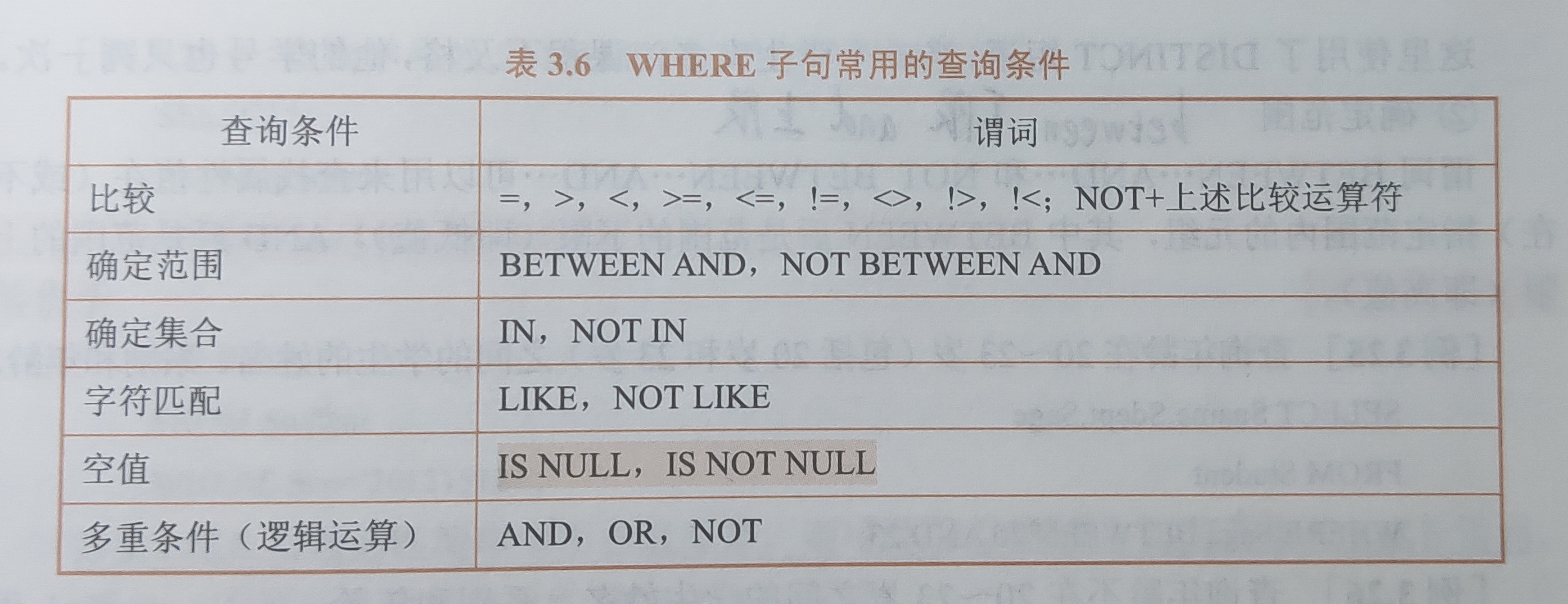 - where 语句中用来连接两个表的条件称为连接条件,连接条件中的运算符称为连接运算符。