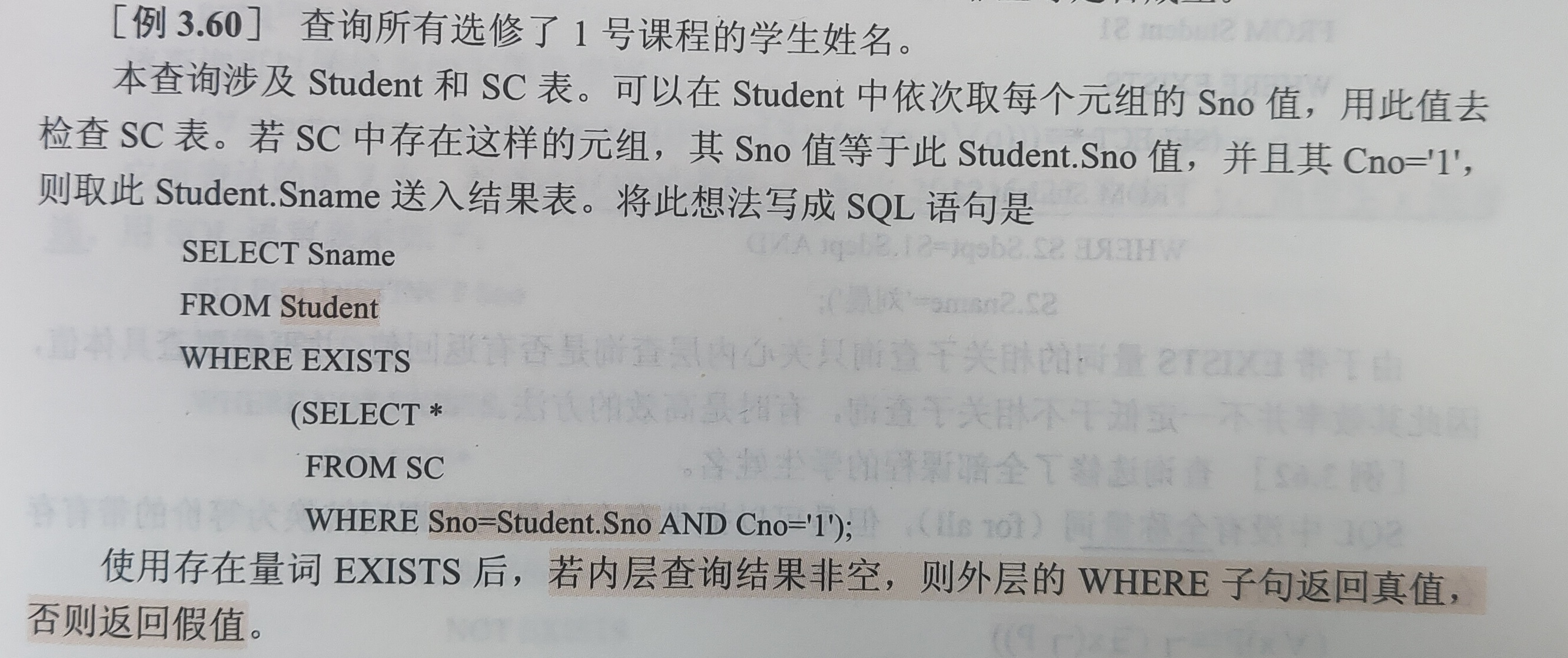 由 exists 引出的子循环,其目标列表达式通常都用 * ,因为查询只返回布尔值,给出列名无实际意义。