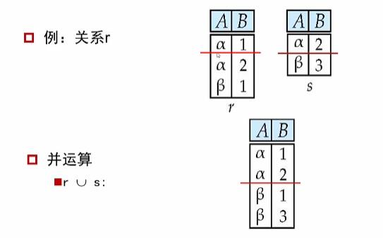 由于关系不允许重复元组,因此应该在“并”之后删除重复部分。