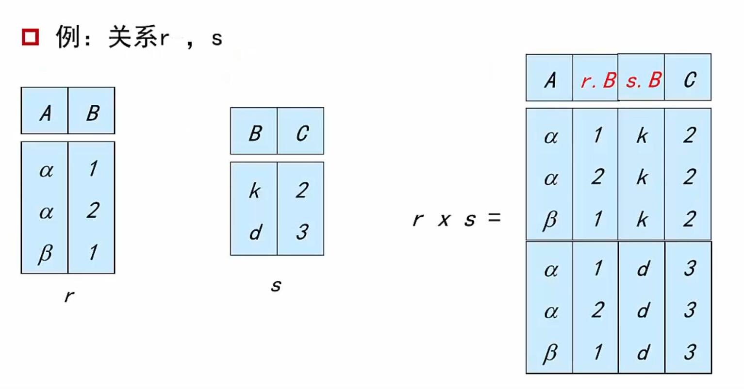 如果 R 和 S 的属性有交集,那么必须重命名这些有交集的属性。