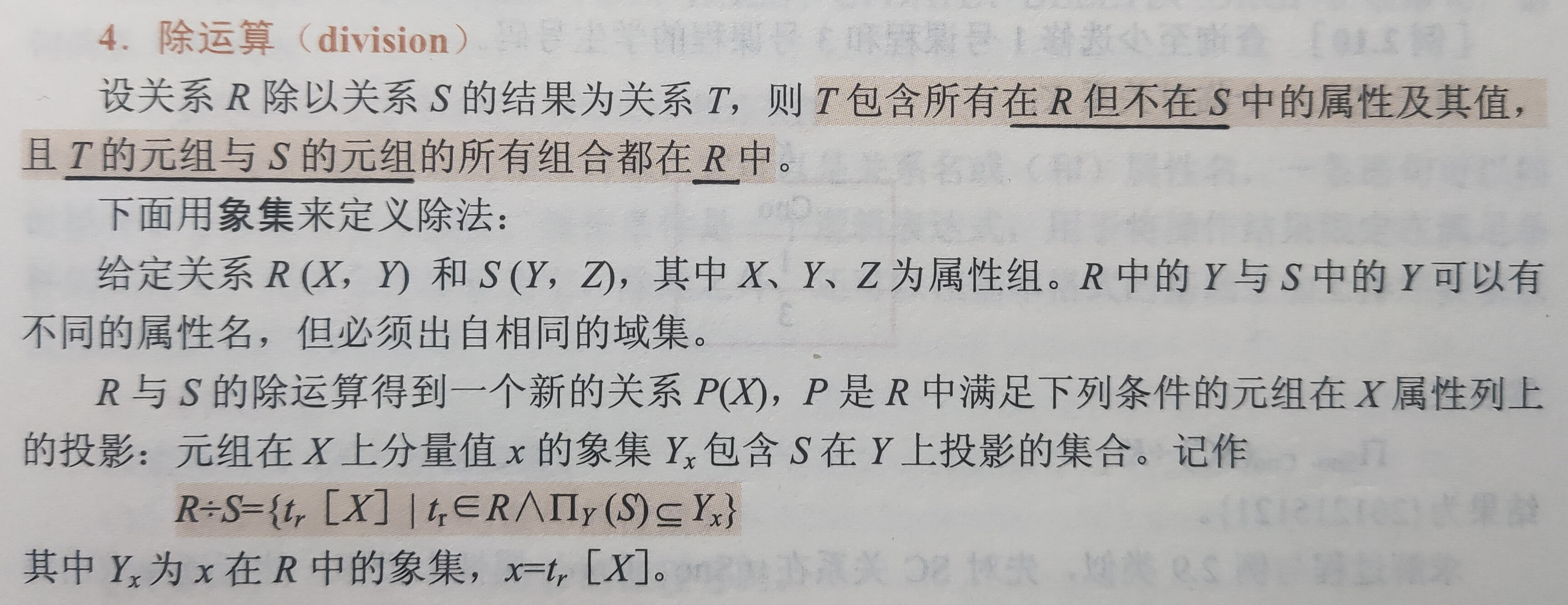 设关系 R 和关系 S 等目(具有相同的目 n,即两个关系都有 n 个属性)且同域(对应的属性都取自同一个域)。 t 是元组变量, t ∈ R